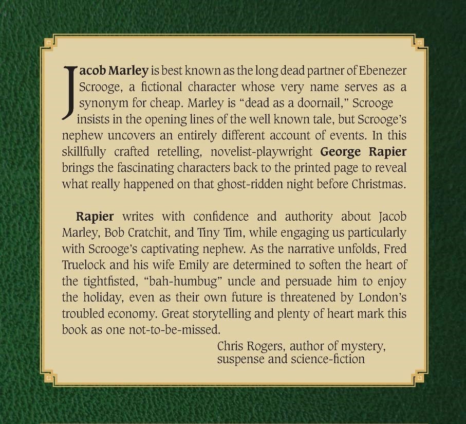This novel has been reviewed by the prestigious Kirkus Reviews! “In terms of period details and customs, Dickens would surely approve of Rapier’s retelling. A difference is that readers get a much fuller picture of Fred, a real mensch, and Marley, a livelier and more outgoing character than his friend Ebenezer . . . An afterword by Fred’s son . . . ties all the loose ends together in a fashion that Boz would applaud . . . Faithful to the spirit of Dickens, this engaging tale gives two neglected characters their due.” — Kirkus Reviews [To see the full review click: https://www.kirkusreviews.com/book-reviews/george-rapier/the-truth-about-jacob-marley/]